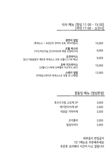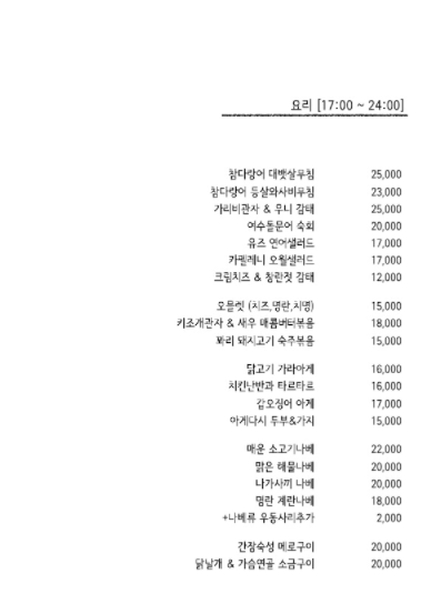 메뉴예요. 참고하세요~