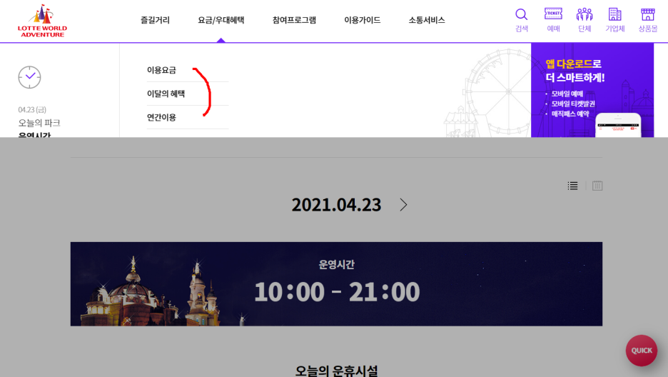 이용요금, 이달의 혜택, 연간이용 사이트에서 확인하시면 ~ 매달 바뀌는 혜택을 ! 볼수 있어요