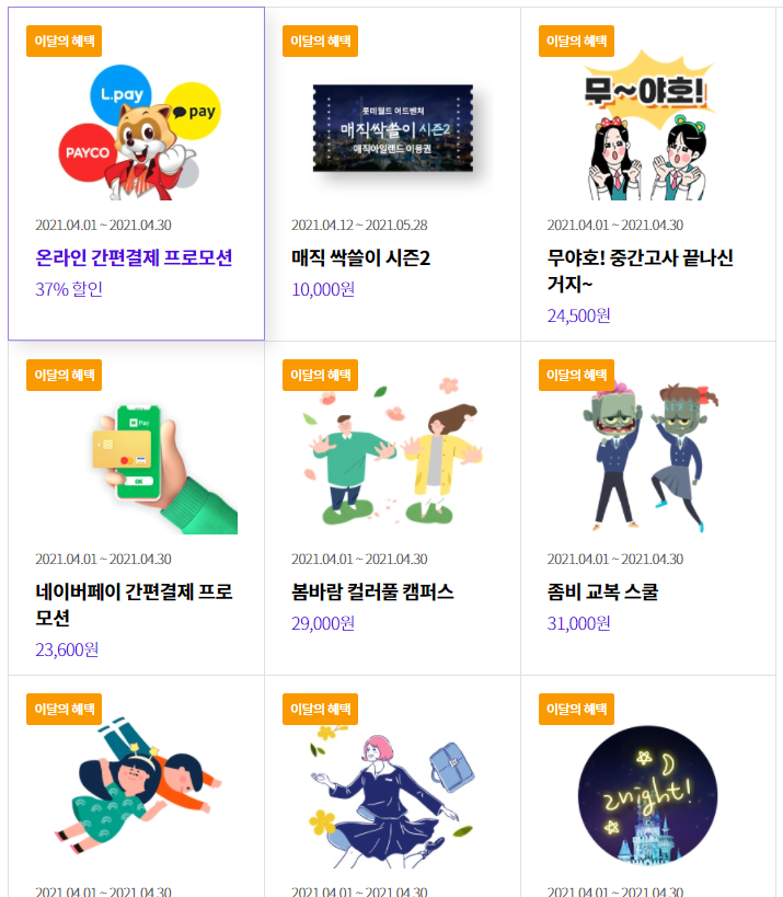 추가적으로 사이트에 들어가서 혜택란을 보시면