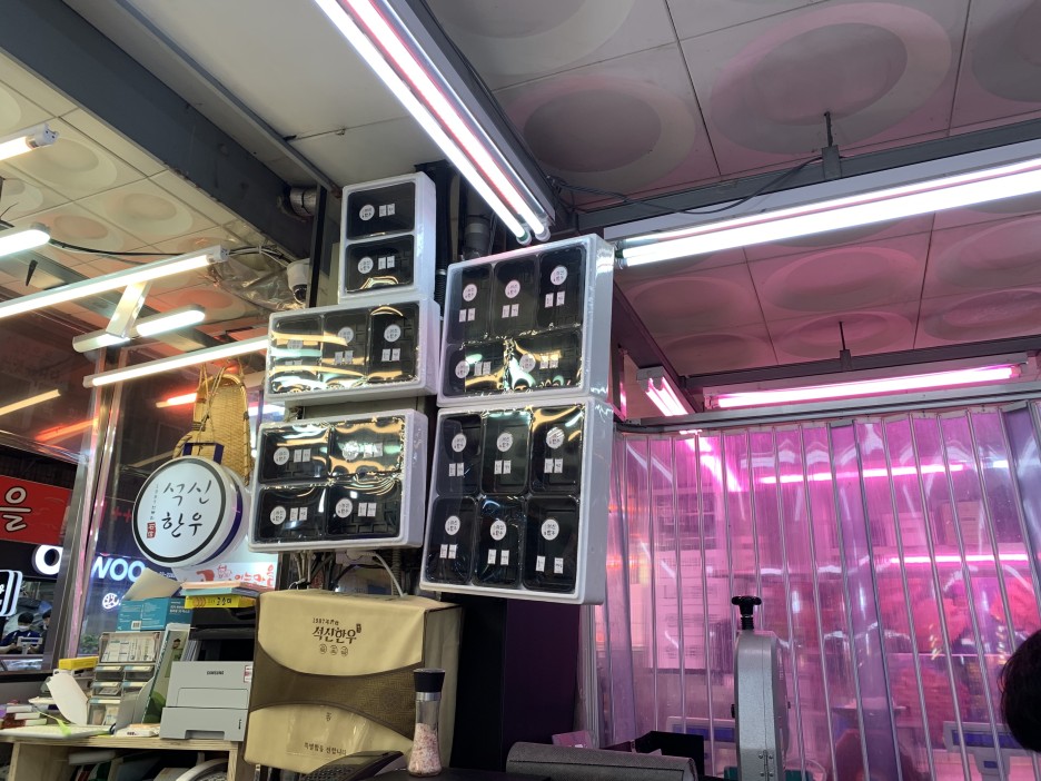 석신한우의 내부는 이러한 환경. ㅎㅎㅎ 딱히 찍을게.. 사실 축산시장 첨이고 해서 위축되어서 사진을 찍을 수가..........뭔가 조심 ?스러웠다고나 할까요?